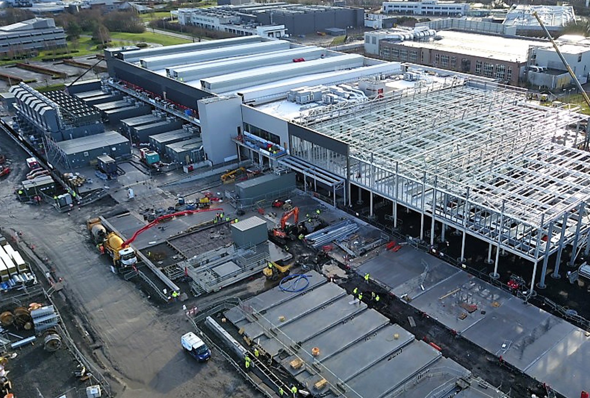 Dublin 4 phase included the entire campus infrastructure & services together with the construction of the building itself, which comprised 4 data halls, each providing 3.84MW IT load. This project also included an accompanying central administration block, and the delivery of electricity grid power to the site. Three further buildings of similar size were planned for the site.